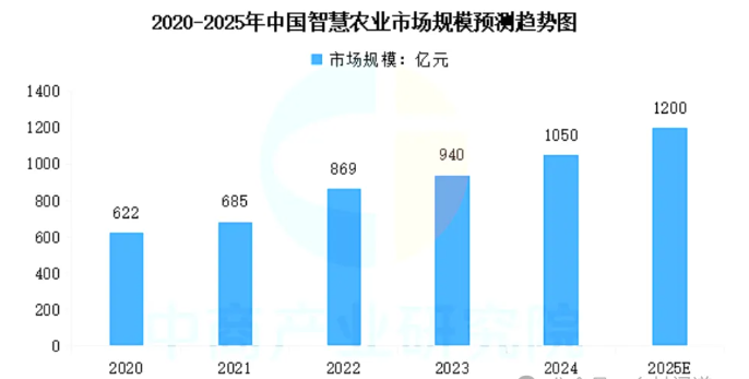 在全球智慧農(nóng)業(yè)市場的快速增長中,中國也扮演著重要角色。中國作為農(nóng)業(yè)大國,對智慧農(nóng)業(yè)技術(shù)的需求和應(yīng)用尤為迫切。政府和企業(yè)紛紛加大投入,推動智慧農(nóng)業(yè)技術(shù)的研發(fā)和應(yīng)用。【鄉(xiāng)村聞道】認(rèn)為智慧農(nóng)業(yè)市場規(guī)模連年增長,2024年中國智慧農(nóng)業(yè)市場規(guī)模超千億元,達到約1050億元,預(yù)計2025年將達到1200億元。